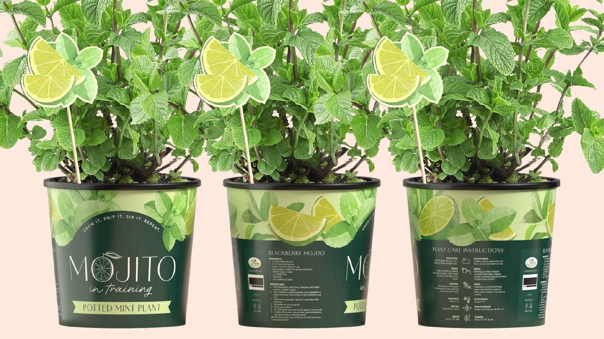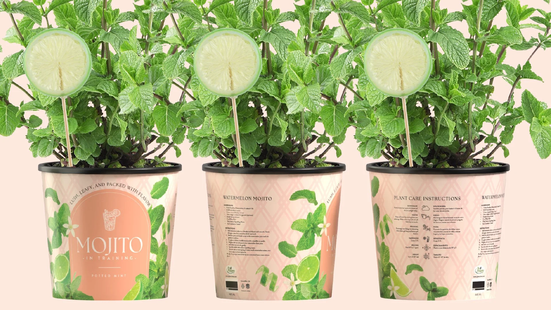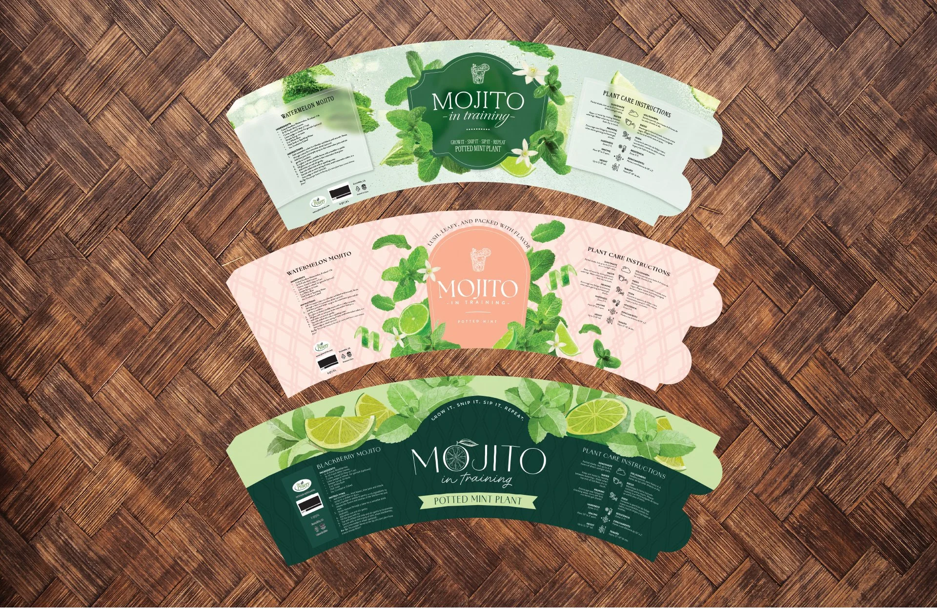 This customer requested to see a few design options for a value-adding upgrade to their 4.5" potted mint program built around the theme "Mojito in Training." As a fun summer exclusive, their objective was to enhance the overall retail appeal of their product while maintaining low production costs.